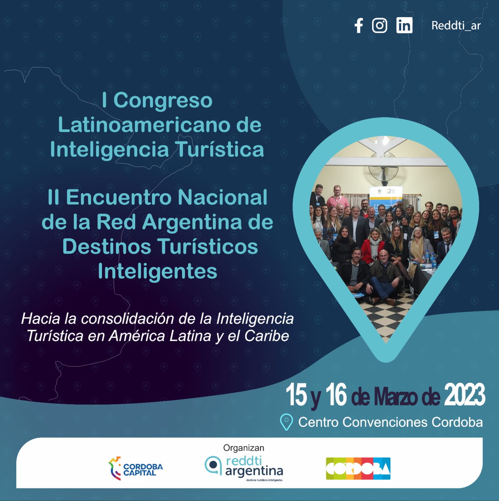 El I CONGRESO LATINOAMERICANO DE INTELIGENCIA TURÍSTICA y el II ENCUENTRO NACIONAL DE LA RED ARGENTINA DE DESTINOS TURÍSTICOS INTELIGENTES se llevará a cabo el 15 y 16 de marzo en el Centro de Convenciones Córdoba Brigadier Gral. Juan B. Bustos – ciudad de Córdoba.